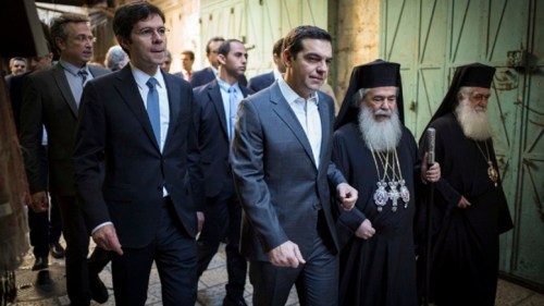 Ο πρωθυπουργός Αλέξης Τσίπρας επισκέφθηκε τον Πανάγιο Τάφο μαζί με τον Πατριάρχη Θεόφιλο, όπου τους ξενάγησε η επικεφαλής της επιστημονικής ομάδας του ΕΜΠ, καθηγήτρια Αντωνία Μοροπούλου, η οποία τους ενημέρωσε με λεπτομέρειες για τις εργασίες αναστήλωσης και αποκατάστασης του ιερού κουβουκλίου του Παναγίου Τάφου από επιστημονική ομάδα του Εθνικού Μετσόβειου Πολυτεχνείου (ΕΜΠ), την Πέμπτη 8 Δεκεμβρίου 2016, στην Ιερουσαλήμ. Μετά την ολοκλήρωση της επίσκεψης, ο πρωθυπουργός μετέβη σε κεντρικό ξενοδοχείο της Ιερουσαλήμ, όπου διεξάγονται οι διμερείς συναντήσεις και στη συνέχεια θα ακολουθήσει τριμερής συνάντησης Ελλάδας- Κύπρου- Ισραήλ, με τη συμμετοχή του Έλληνα πρωθυπουργού Αλέξη Τσίπρα, του προέδρου της Κυπριακής Δημοκρατίας Νίκου Αναστασιάδη και του πρωθυπουργού του Ισραήλ Μπενιαμίν Νετανίαχου. ΑΠΕ-ΜΠΕ/ΓΡΑΦΕΙΟ ΤΥΠΟΥ ΠΡΩΘΥΠΟΥΡΓΟΥ/Andrea Bonetti