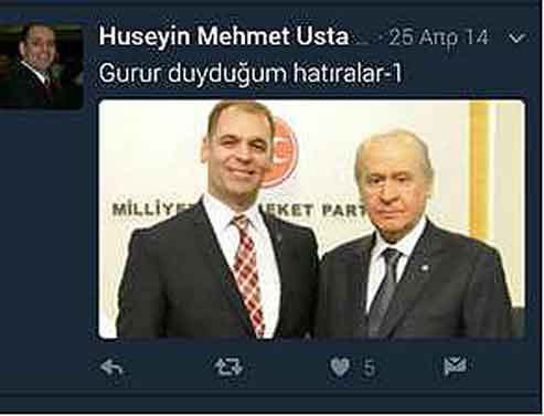 Στην παραπάνω ανάρτηση του ο κ. Ουστά εικονίζεται με τον νυν ηγέτη του ΜΗΡ και φασίστα Ντεβλέτ Μπαχτσελί.