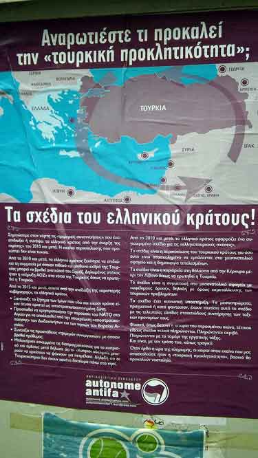 Σήμερα σε πολλούς δρόμους της Αθήνας είχαμε το ίδιο φαινόμενο! Την περυσινή αφίσα αλλά και μια δεύτερη με την οποία υποστηριζόταν ότι την τουρκική προκλητικότητα την …παράγει η Ελλάδα με τα σχέδιά της.