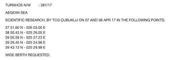 Βγάζουν ωκεανογραφικό στο Αιγαίο οι Τούρκοι Posted on 6 Απριλίου, 2017 by Μιλήσιος Σχολιάστε Βγάζουν ωκεανογραφικό σκάφος στο Αιγαίο οι Τούρκοι. Σύμφωνα με Navtex που εκδόθηκε αύριο οι Τούρκοι βγάζουν στο Αιγαίο το Cubuklu. Επίσημη δικαιολογία “επιστημονικές έρευνες”. Οι περιοχές που θα πλεύσει στους χάρτες. πηγη Κοινοποιήστε:Tweet Κλικ για αποστολή ενός συνδέσμου μέσω email σε έναν/μία φίλο/η(Ανοίγει σε νέο παράθυρο) Email Κλικ για εκτύπωση(Ανοίγει σε νέο παράθυρο) Εκτύπωση Μου αρέσει! Φόρτωση... Σχετικά