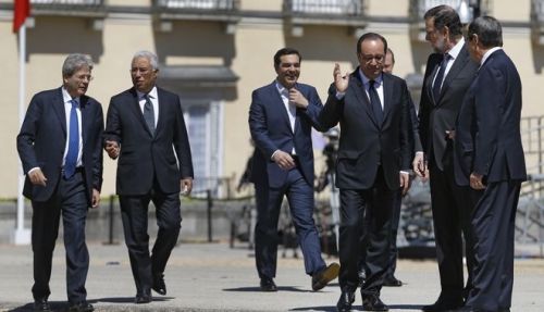 «Η Συρία, το Brexit, το μεταναστευτικό και η ανάγκη να συζητηθεί ξανά το Σύμφωνο Σταθερότητας, ώστε να δοθεί μεγαλύτερη έμφαση στις επενδύσεις και την αντιμετώπιση της ανεργίας, βρέθηκαν στο επίκεντρο της τρίτης Συνόδου των Ευρωπαϊκών χωρών του Νότου στη Μαδρίτη, από όπου ο πρωθυπουργός Αλέξης Τσίπρας άδραξε την ευκαιρία να απαντήσει εμμέσως πλην σαφώς στο Βερολίνο, τονίζοντας ότι είναι ώρα για λύση στο χρέος και αποφάσεις για τα πρωτογενή πλεονάσματα σε μεσοπρόθεσμο ορίζοντα