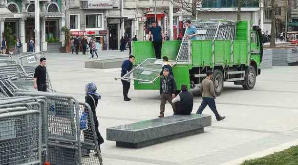 Παρά του ότι η Πρωτομαγιά είναι μετά από δέκα μέρες, εν τούτοις από τώρα άρχισαν να λαμβάνονται έκτακτα μέτρα στην Κωνσταντινούπολη και συγκεκριμένα στην πλατεία Ταξίμ για την αποτροπή διαδηλώσεων που μπορεί να εκτραπούν ένεκα της επικαιρότητας και μετά την αμφισβήτηση της εγκυρότητας του δημοψηφίσματος, σε κατά μέτωπο συγκρούσεις με τις αρχές.