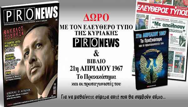 Το κορυφαίο σε πωλήσεις πολιτικό περιοδικό Pronews και ένα βιβλίο-ντοκουμέντο για το πραξικόπημα της 21ης Απριλίου του 1967 και τους πρωταγωνιστές του.