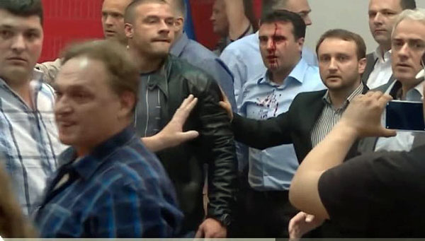 O επικεφαλής του σοσιαλιστικού κόμματος της ΠΓΔΜ, Ζόραν Ζάεβ χτυπημένος, με αίματα στο πρόσωπο