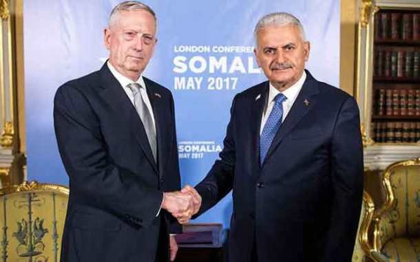 Το ότι η Ουάσιγκτον είναι αφοσιωμένη στην προστασία του νατοϊκού συμμάχου της διαβεβαίωσε ο Αμερικανός υπουργός Άμυνας, Τζιμ Μάτις, τον Τούρκο πρωθυπουργό Μπιναλί Γιλντιρίμ, μετά τη συνάντηση των δύο ανδρών στο Λονδίνο, ανακοίνωσε σήμερα η εκπρόσωπος του υπουργού.