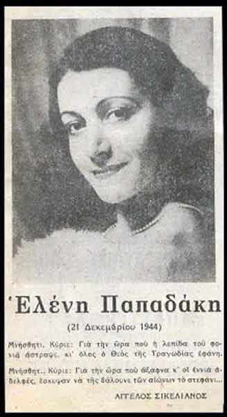 Πριν από μερικές ημέρες, είχαμε δημοσιεύσει το χρονικό της αποτρόπαιας δολοφονίας με τσεκούρι, από τα αποβράσματα του ΕΑΜ, της κορυφαίας Ελληνίδας ηθοποιού του Μεσοπολέμου, Ελένης Παπαδάκη.