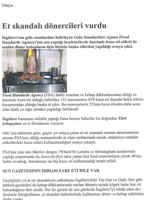 Το σκάνδαλο ξέσπασε μετά από επισταμένη έρευνα της αγγλικής, «Food Standards Agency», (FSA), σε 143 εστιατόρια τα περισσότερα των οποίων ανήκουν σε Τούρκους που διανέμουν μόνιμα στην Μεγάλη Βρετανία και διατηρούν καταστήματα με τον κλασικό γύρο.
