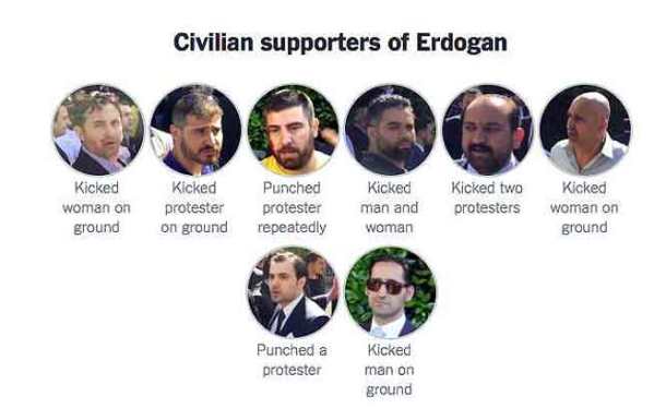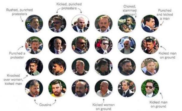 Οι New York Times σε ρεπορτάζ τους με βίντεο και φωτογραφίες έχουν έναν προς έναν τα “κουτσαβάκια” του Ερντογάν και αποκαλύπτουν ακόμη και πόσοι και ποιοι οπλοφορούσαν!