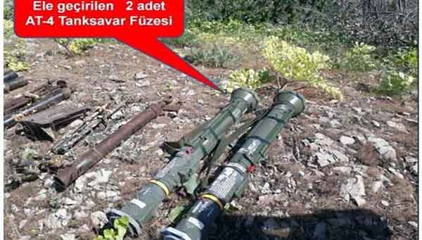 Βρέθηκαν σε επιχείρηση του τουρκικού Στρατού, στην περιοχή Μπιλίτς Τεπέ (Biliç Tepe )της επαρχίας Σιρνάκ. Σύμφωνα με την ανακοίνωση του τουρκικού Στρατού, βρέθηκαν δύο φορητά αντιαρματικά τύπου AT-4 και 10 πυρομαχικά τους.