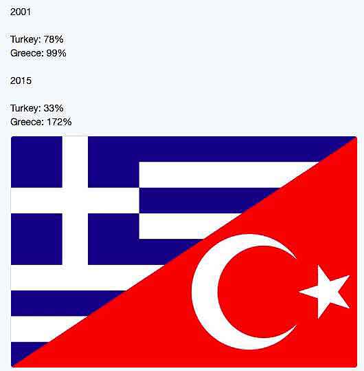 Είναι τα στοιχεία του χρέους το 2001 και το 2015 συγκρινόμενα με την Τουρκία που δεν είναι μέλος της ΕΕ.