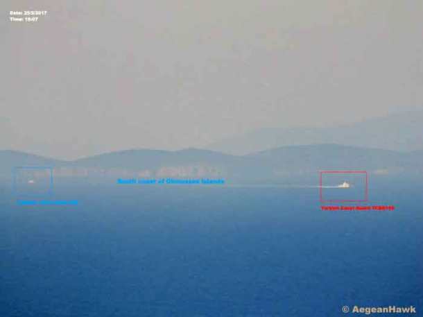 Tην ίδια στιγμή είχαμε άγρια καταδίωξη τουρκικού πλοίου στις Οινούσσες όπως θα δείτε και στις φωτογραφίες παρακάτω. Οι καταδρομείς μας στη Νήσο Παναγιά ήταν έτοιμοι και με το δάχτυλο στη σκανδάλη να τους «θερίσουν».