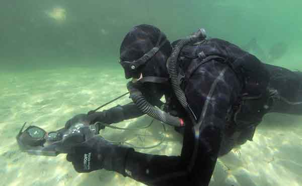 Το Κομάντο με πλήρη εξάρτηση και Οπλισμό μεταφέρει αθόρυβα την βόμβα βεντούζα στα Ύφαλα του Εχθρικού Σκάφους!
