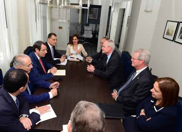 Στη συνάντηση μετείχαν οι υπουργοί Eξωτερικών και ενέργειας Ι. Κασουλίδης και Γ. Λακκοτρύπης και ο κυβερνητικός εκπρόσωπος Νίκος Χριστοδουλίδης.