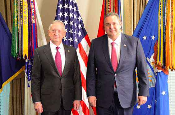 Επίσης εργαζόμαστε για αυτό με το Υπουργείο Εθνικής Άμυνας, με τις ελληνικές Ένοπλες Δυνάμεις και με τον Υπουργό Άμυνας των ΗΠΑ Στρατηγό James Mattis, με τις Ένοπλες Δυνάμεις των ΗΠΑ και είμαι αισιόδοξος ότι πολύ σύντομα θα είμαστε έτοιμοι να υπογράψουμε όχι μόνο την επέκταση των δυνατοτήτων της αμυντικής μας συνεργασίας αλλά και μία παράταση για περισσότερα χρόνια”, είπε χαρακτηριστικά ο κος Π.Καμμένος και συνέχισε: