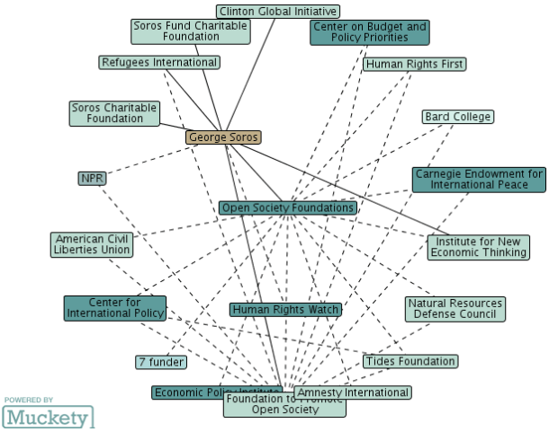 Τόσο έντονος φανατισμός δεν συνηθίζεται στα ιδρύματα. Στον βαθμό που, σύμφωνα με τους κανόνες του I.R.S. (σ.τ.μ. φορολογική υπηρεσία των Η.Π.Α.) , τα ιδρύματα του Σόρος απαλλάσσονται από φορολογικές υποχρεώσεις και λαμβάνουν αφορολόγητες δωρεές (από τον ίδιο τον Σόρος), δεν μπορούν να αναμειγνύονται στις περισσότερες μορφές πολιτικής δραστηριότητας […].