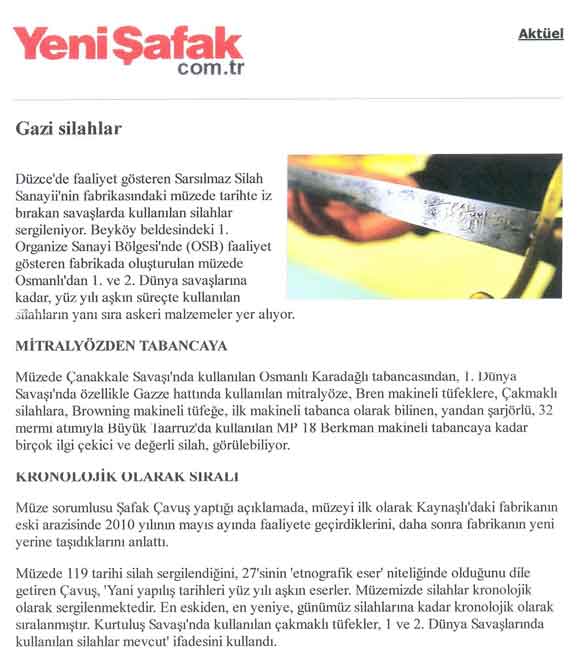 Την έκθεση αυτή, όπως αναφέρει και η φιλοκυβερνητική τουρκική εφημερίδα, Yeni Şafak, την οργανώνει ο δήμος του Beykoz σε συνεργασία με την τουρκική βιομηχανία παραγωγής όπλων, Sarsılmaz Silah Sanayi.