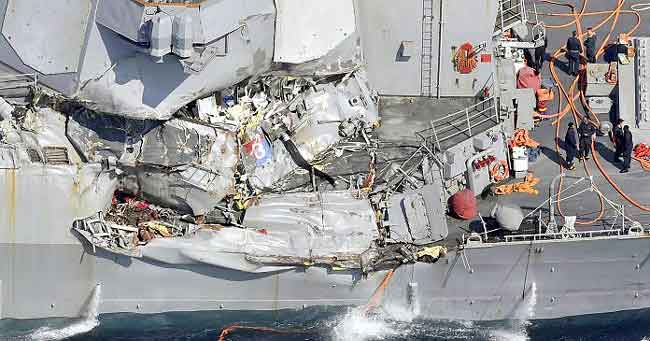 usa_antitorpilika-696×365 Published 17 Ιουνίου, 2017 at 650 × 341 in Επτά ναύτες αγνοούνται από τη σύγκρουση αμερικανικού πολεμικού με εμπορικό πλοίο – “Τσακισμένο” αντιτορπιλικό! Η φωτογραφία του USS Fitzgerald μετά τη σύγκρουση Επόμενο →