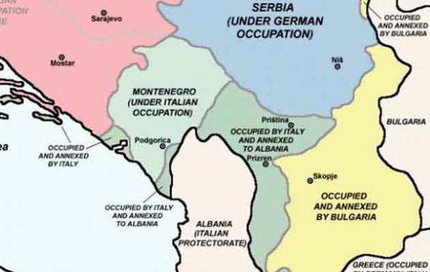 Όπως βλέπετε και στην εικόνα, στον χάρτη της διχοτόμησης των Σκοπίων από τους Γερμανούς και τους συμμάχους τους, το κίτρινο χρώμα είναι η βουλγαρόφωνη περιοχή που είχε προσαρτηθεί στη Βουλγαρία και το πράσινο η αλβανόφωνη.