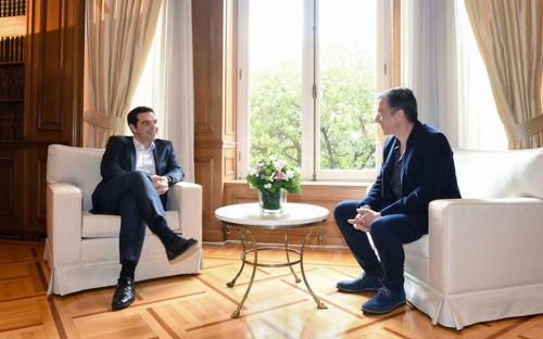 Περίπου στις 6 το απόγευμα πραγματοποιήθηκε η συνάντηση του πρωθυπουργού με τον κ. Θεοδωράκη, στο Μέγαρο Μαξίμου, με τους δύο άνδρες να εκφράζουν τη στήριξή τους στον πρόεδρο της Κύπρου Νίκο Αναστασιάδη και τις προσπάθειές του για εξεύρεση λύσης στο Κυπριακό.