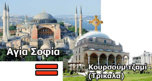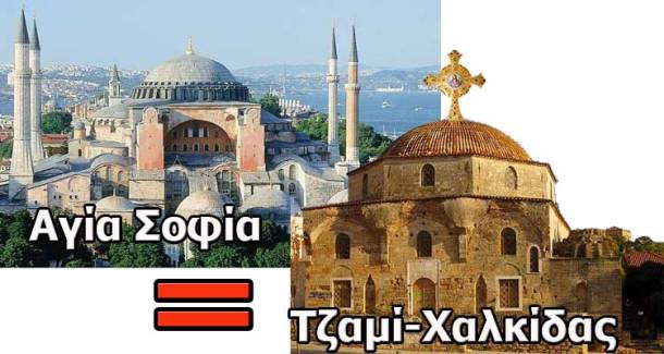 Αν και εμείς οι Έλληνες θέλαμε να ανταποδώσουμε στους τούρκους τους μιναρέδες της αιώνιας Ισλαμικής σκλαβιάς που περιτριγυρίζουν την Αγία Σοφιά , θα έπρεπε σε όσα τζαμιά της οθωμανικής τους σκλαβιάς παρέμειναν δυστυχώς στην Ελλάδα , να τους καρφώναμε έναν τεράστιο σταυρό στην κορυφή τους.