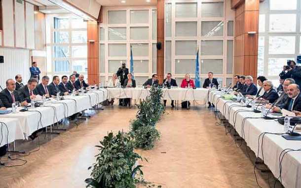 Τα θέματα της ασφάλειας και των εγγυήσεων βρίσκονται στο επίκεντρο της Διάσκεψης για το Κυπριακό που άρχισε χθες στο ελβετικό θέρετρο Κραν-Μοντανά. Ο υπουργός Εξωτερικών Νίκος Κοτζιάς (δεξιά) παρουσίασε αναλυτική πρόταση για την κατάργηση των εγγυήσεων.