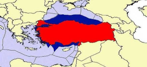 Ο παραπάνω χάρτης δείχνει ξεκάθαρα γιατί όλες οι τουρκικές κυβερνήσεις δεν αναφέρονται ποτέ στις τρείς λέξεις «Αποκλειστική Οικονομική Ζώνη» αλλά επιμένουν να αναφέρονται μόνο στην υφαλοκρηπίδα.