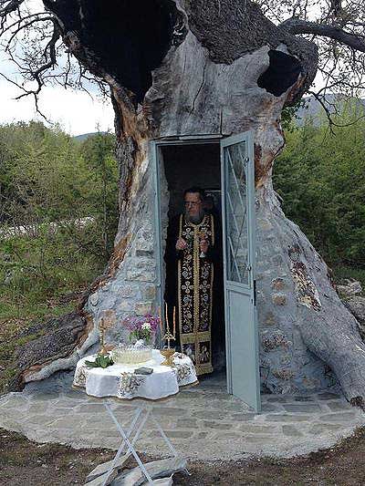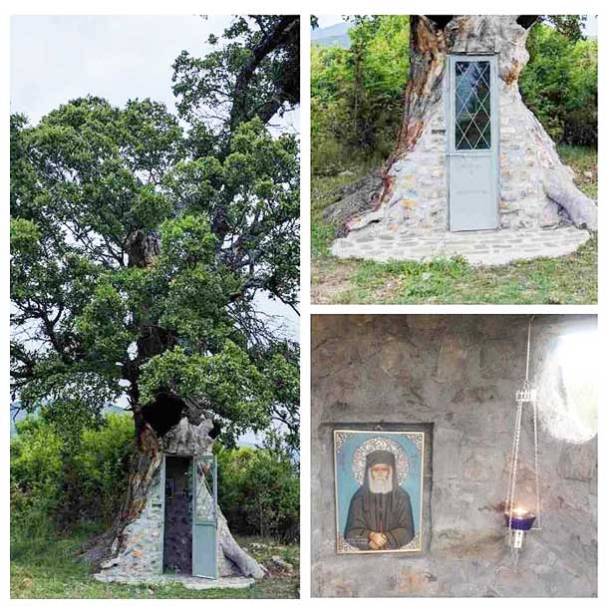 Μια βελανιδιά 300 ετών η οποία έχει σωθεί από την φωτιά και την καταστροφή από έναν ευσεβή Έλληνα ορθόδοξο πιστό , μετατράπηκε σε ένα εκκλησάκι αφιερωμένο στον Άγιο Παΐσιο τον Αθωνίτη μέσα στον κορμό του.