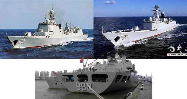 Συγκεκριμένα τα τρία πλοία ήταν τα: Εφοδιαστικό CHAO HU 890 , η φρεγάτα JINGZHOU 532 και το αντιτορπιλικό CHANGCHUN 150.