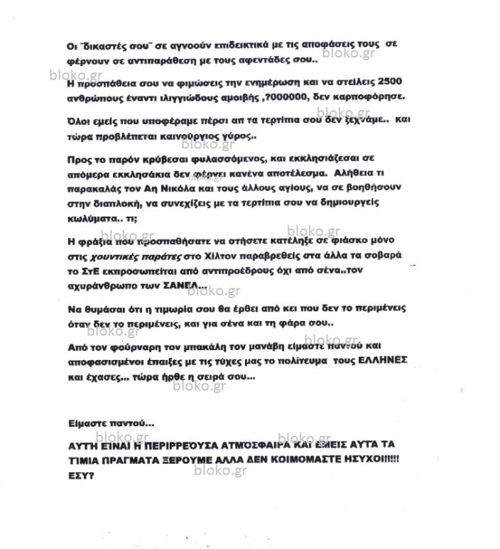 Διαβάστε τί έγραφε η απειλητική επιστολή σύμφωνα με το bloko.gr