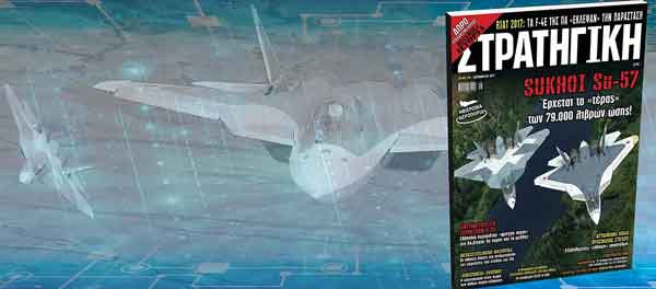 Σε ένα τεύχος-αφιέρωμα στην Αεροπορία, η νέα ΣΤΡΑΤΗΓΙΚΗ κυκλοφορεί με μια μεγάλη αποκλειστικότητα: Έναν πλήρη φάκελο για το Su-57, το «τέρας» των 79.000 λιβρών ώσης, το υπερμαχητικό 5ης γενιάς της ρωσικής Αεροπορίας, το οποίο θα αρχίσει να εντάσσεται στο οπλοστάσιο της από το 2020.