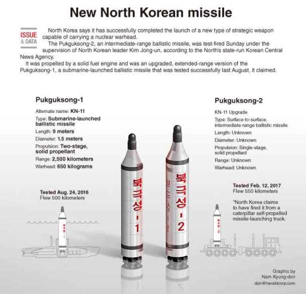 Στρατιωτικοί εμπειρογνώμονες αναφέρουν με τρόμο ότι Βόρεια Κορέα , με επικεφαλής τον Κιμ Γιονγκ-ουν, αναζητά εναγωνίως για προφανείς λόγους, την εκτόξευση βαλλιστικού πυραύλου με πιθανή πυρηνική γόμωση από υποβρύχιο στη θάλασσα, δείχνοντας το πύραυλο Pukguksong-1.