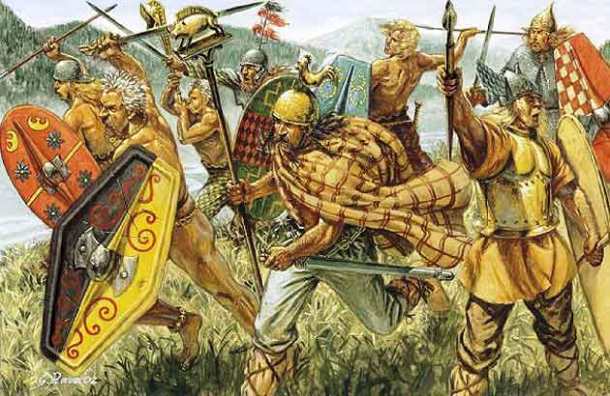 Εκπαιδευμένοι ως οπλίτες, διενήργησαν μια κατά μέτωπον επίθεση ενάντια στους Γαλάτες αλλά υπέστησαν εκτενείς απώλειες απέναντι σε έναν σαφώς πολυπληθέστερο στρατό.