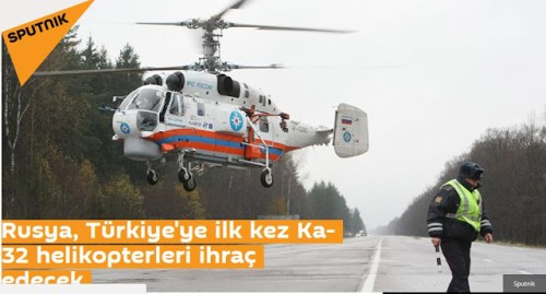 Η ρωσική κυβέρνηση ανακοίνωσε ότι ελικόπτερα πολλαπλών χρήσεων τύπου «Ka-32» θα εξαχθούν στην Τουρκία για πρώτη φορά.