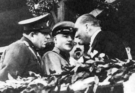 Κατά τη διάρκεια δεξίωσης στην Πρεσβεία της ΕΣΣΔ στην Άγκυρα στις 7 Νοεμβρίου 1927.