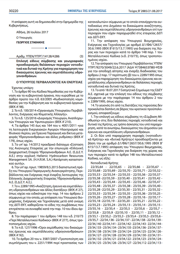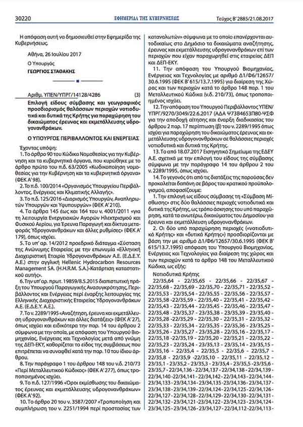 Η αίτηση της Energean Oil που έγινε αποδεκτή από την ελληνική κυβέρνηση προκάλεσε το άνοιγμα ενός νέου γύρου αδειοδότησης και ενός διαγωνισμού, ο οποίος ακολουθεί τα δεδομένα που δημιουργήθηκαν με τις θαλάσσιες περιοχές Δυτικά Κρήτης και Νότια Δυτικά Κρήτης.