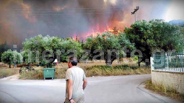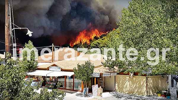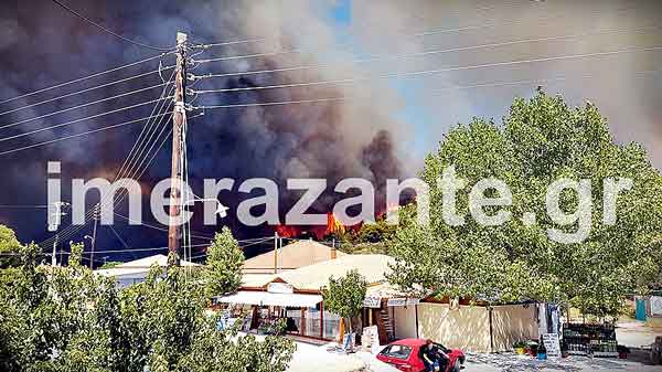 Σε πύρινη κόλαση έχει μετατραπεί από το μεσημέρι ο οικισμός Αναφωνήτρια στη Ζάκυνθο.