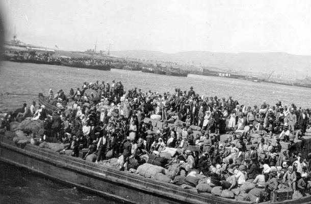 Όταν η ατμάκατος άρχισε να απομακρύνεται ο προδομένος σμυρναικός κόσμος άρχισε να κραυγάζει: