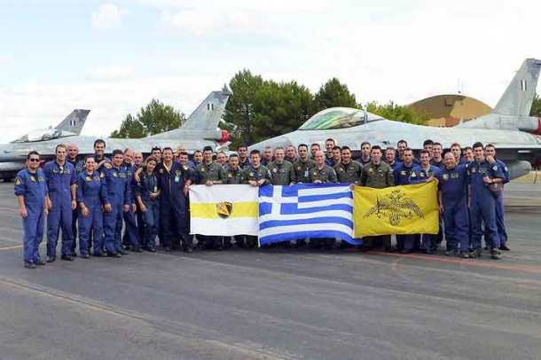 Δείτε όμως τι σήκωσαν οι Ιπτάμενοι και το προσωπικό της Μοίρας των Κεραυνών των F-16 της 111 ΠΜ στο «TLP 2015» του ΝΑΤΟ … Τον Κεραυνό της Μοίρας ,Τον Δικέφαλο Αετό και την Ελληνική Σημαία δίπλα -δίπλα …Αυτά είναι !