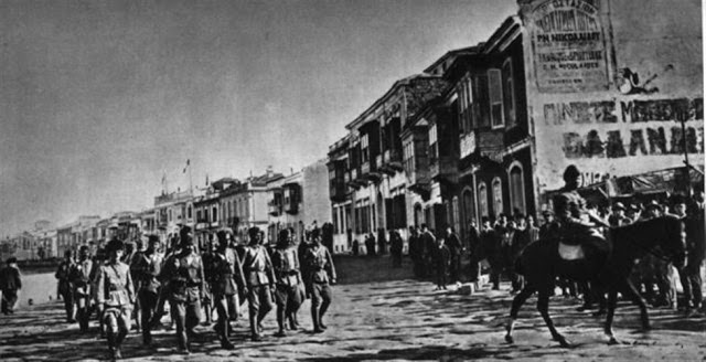Τουρκικά στρατεύματα μπαίνουν στην πόλη της Σμύρνης τον Σεπτέμβριο του 1922