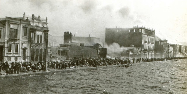 Χιλιάδες κόσμου στο λιμάνι της Σμύρνης ανάμεσα στη φωτιά και στη θάλασσα