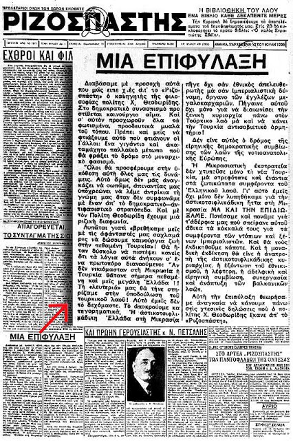 Κοιτάξτε με τα ίδια σας τα μάτια τι έγραφε ο ΡΙΖΟΣΠΑΣΤΗΣ στις 12/7/1935 για την Μικρασιατική καταστροφή…