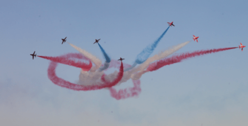Εντυπωσιακή ήταν η επίδειξη των θρυλικών Red Arrows της Βασιλικής Αεροπορίας της Αγγλίας, του ακροβατικού σμήνους Silverstars από την Αίγυπτο, καθώς και των ελληνικών ακροβατικών σμηνών F-16 Zeus και Τ-6 Δαίδαλος.