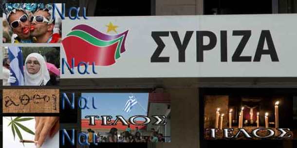 Δεν είναι ότι οι επενδύσεις που έταξε ο Αλέξης Τσίπρας όχι μόνο δεν έρχονται, αλλά φεύγουν και αυτές που υπήρχαν, δεν είναι πώς η οικονομία πάει στο χειρότερο, αλλά έχουμε και τις ιδεοληψίες του κυβερνώντος κόμματος που διαλύουν την κοινωνία. Ο ΣΥΡΙΖΑ θέλει τους Έλληνες χωρίς θρησκεία, και όπως φαίνεται τελευταία τη νεολαία γκέι, τρανσέξουαλκαι βεβαίως μαστουρωμένη.