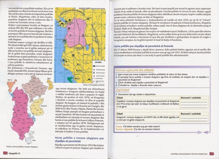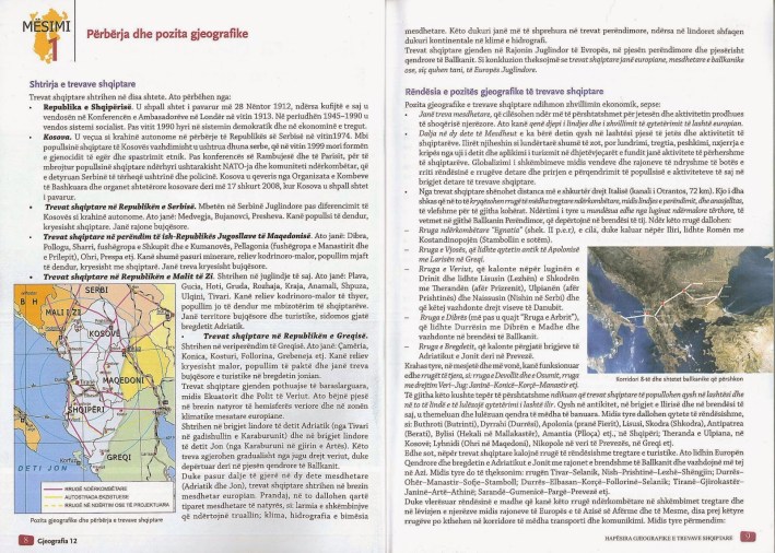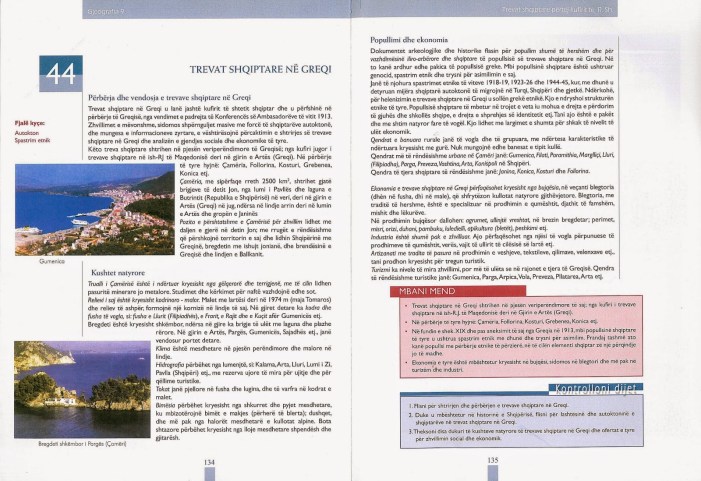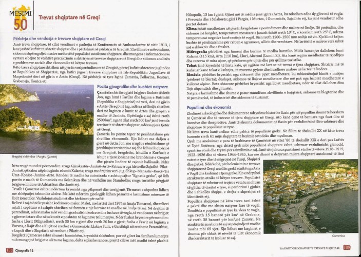 Εδώ και μία εβδομάδα άρχισε η σχολική χρονιά 2017 – 2018. Κατά την έναρξη και αυτής της χρονιάς διαπιστώσαμε ότι τα σχολικά βιβλία Γεωγραφίας που διδάσκονται οι μαθητές της 9ης και της 12ης τάξης στην Αλβανία – μεταξύ τους και οι μαθητές των ελληνικών μειονοτικών σχολείων – συνεχίζουν να περιλαμβάνουν το κεφάλαιο «αλβανικές περιοχές στην Ελλάδα».