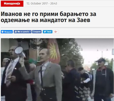 Σύμφωνα με τον πρόεδρο του Εθνικού Συμβουλίου του «Μακεντόνιουμ» Στράσο Ολούμτσεφ, ο πρόεδρος έλειπε και υποσχέθηκε ότι οι διαμαρτυρίες θα συνεχισθούν και θα προσπαθήσουν εκ νέου να παραδώσουν το αίτημα στον πρόεδρο. πηγη