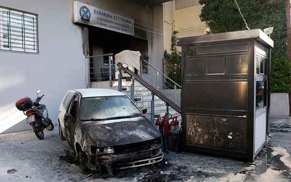 Οι δράστες, περίπου δέκα άτομα, είχαν καλυμμένα πρόσωπα και πέταξαν στην είσοδο του τμήματος περισσότερες από 6-7 βόμβες μολότοφ.