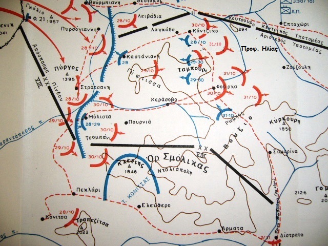 | Σχεδιάγραμμα επιχειρήσεων 3ου (αριστερού ή νότιου) υποτομέα του αποσπάσματος Πίνδου. (σχ. 3) |