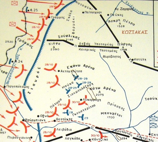 – Υψ. Καταφύκι – Υψ. Κιάφα – Σταυρός – Οξυά – Μόλιστα – Τσομπάνι (Κύρια τοποθεσία αμύνης)