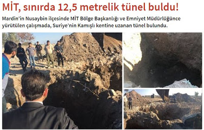 Στην περιοχή της Νουσαϊμπίν στην επαρχία Μαρντίν, το περιφερειακό γραφείο των μυστικών υπηρεσιών (MİT) και η διεύθυνση ασφαλείας της περιοχής, εντόπισαν μια σήραγγα κάτω από τα σύνορα και οδηγεί στην ακριβώς δίπλα, πόλη της Συρίας.