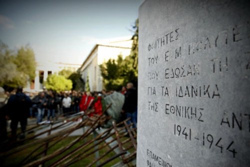 Εκατοντάδες φοιτητές και μέλη από νεολαίες αριστερών οργανώσεων πραγματοποίησαν πορεία προς το Πολυτεχνείο, προκειμένου να σταματήσει η κατάληψη και να γίνουν οι εκδηλώσεις για τον εορτασμό της 44ης επετείου της εξέγερσης.